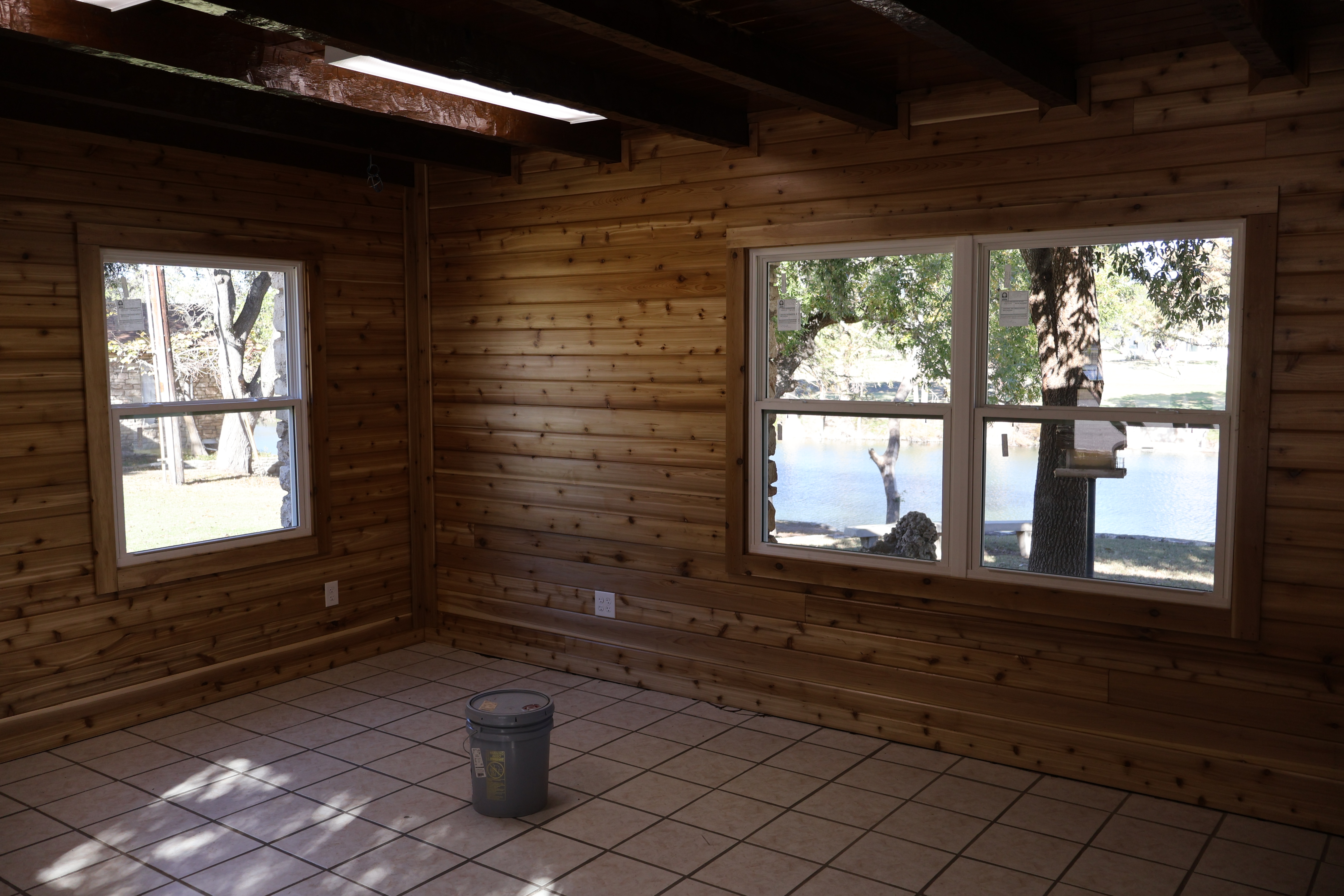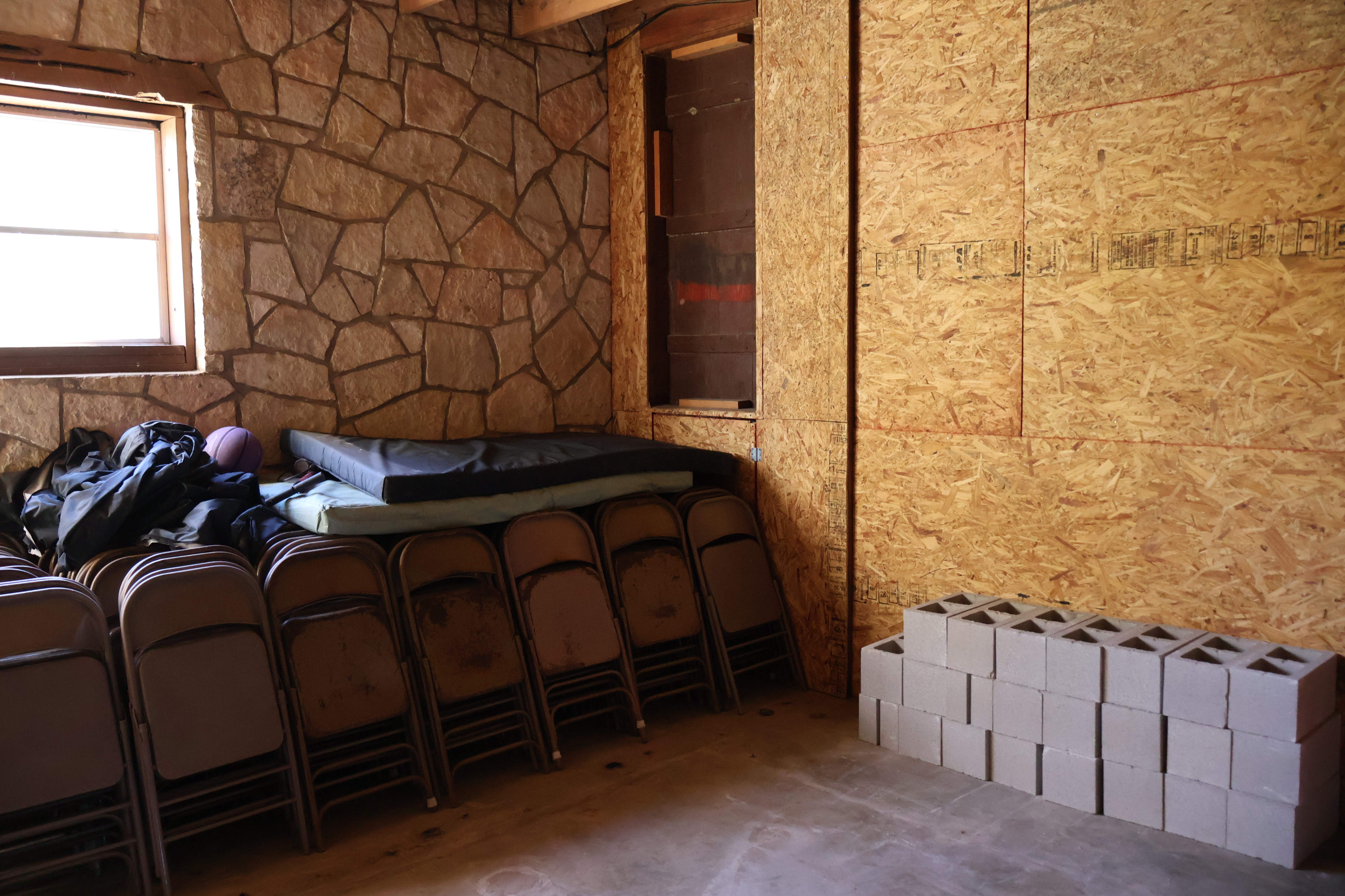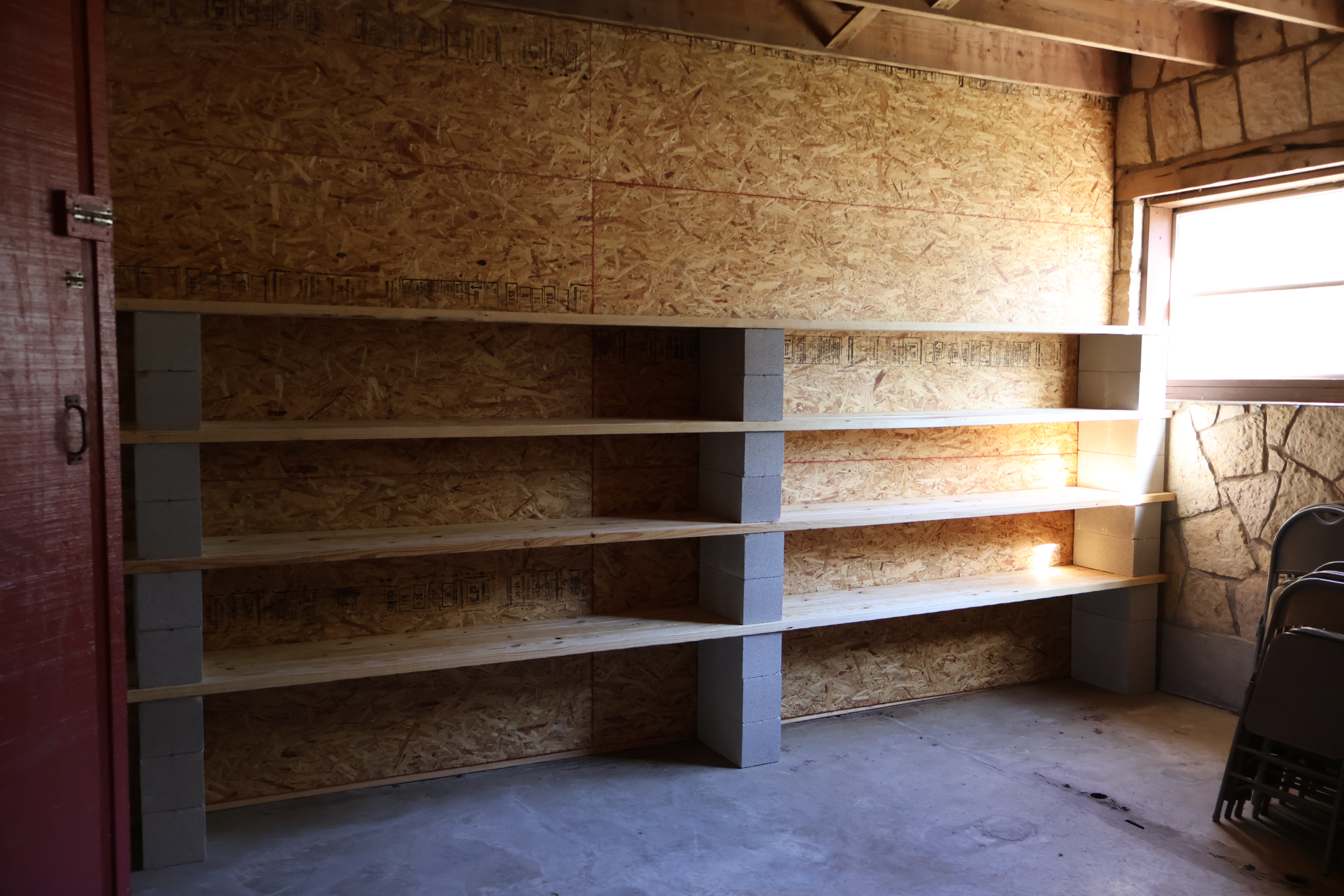The downstairs storage room has also undergone a major transformation. What used to be several small, sectioned-off spaces is now one big open room with built-in cabinets. If you’ve seen this room before, you’ll be amazed at how spacious it feels now — it’ll be perfect for storing all kinds of camp gear.