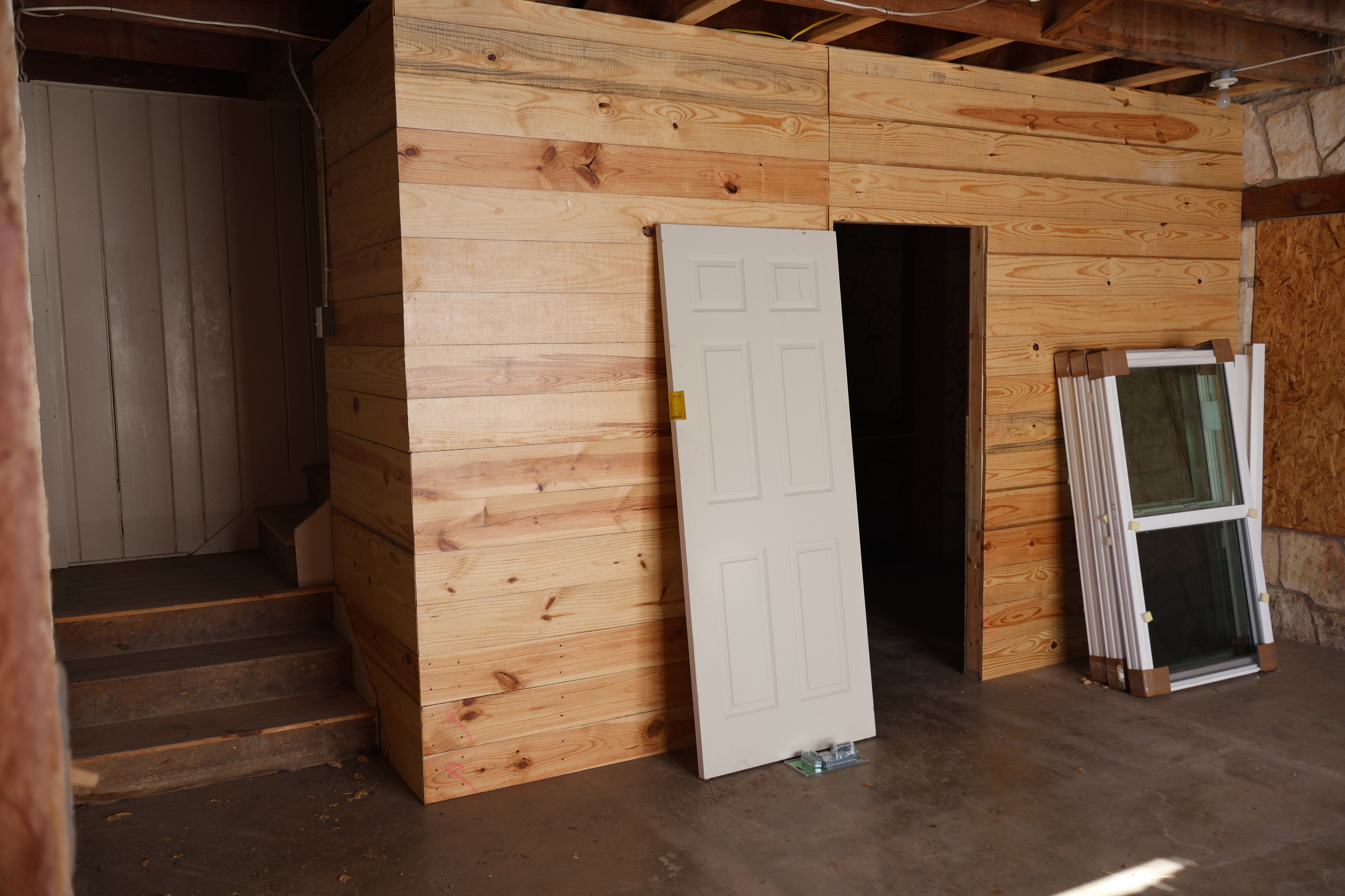 Over by the store area, the bathroom doors are back on, and the store itself is getting a bit of a refresh. It was full of carpenters today, so no sneak peeks yet — but we can’t wait to show you soon! The back storage closets also have brand-new doors installed.