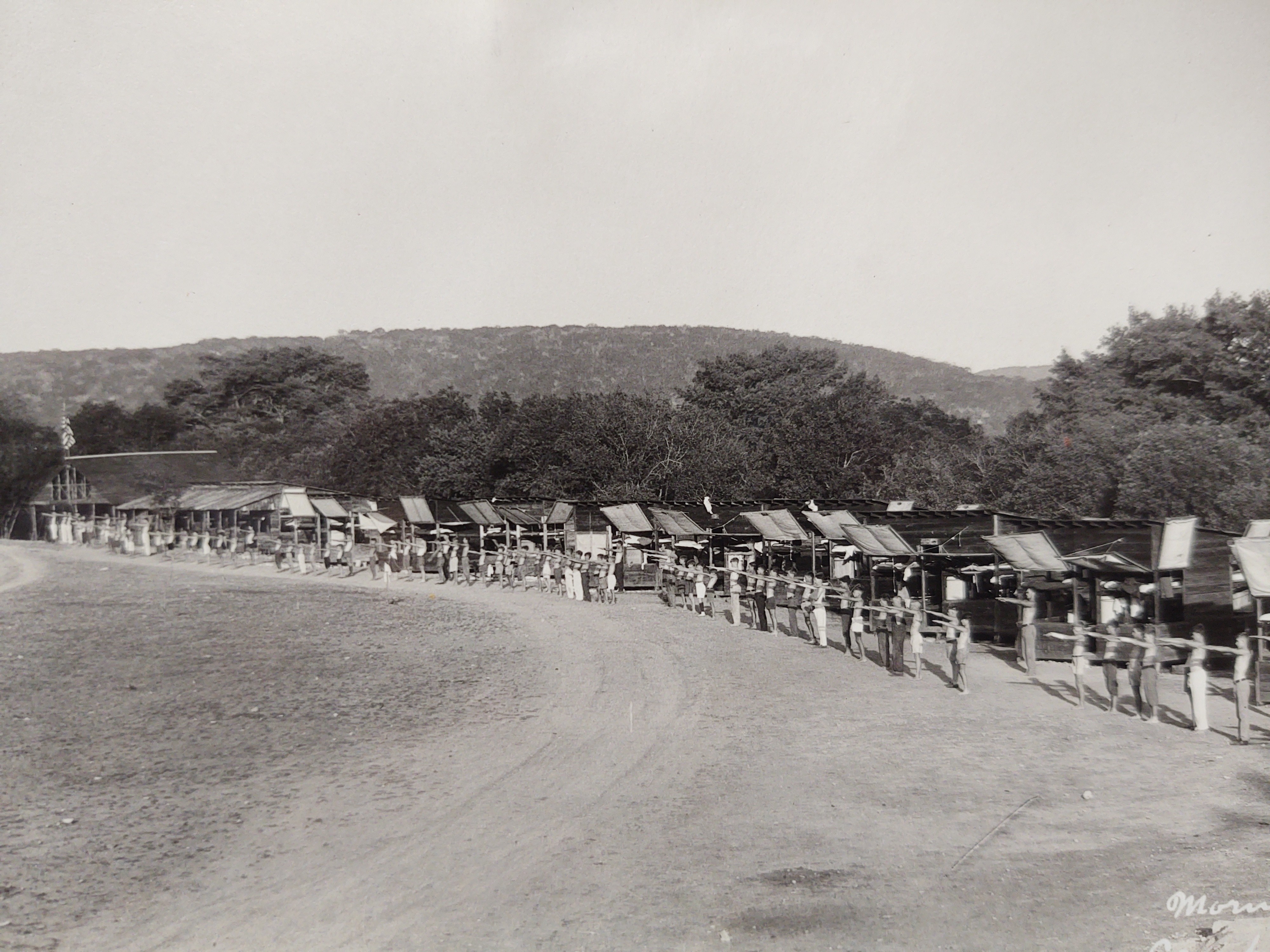 buildings pictured: Library, office headquarters and original cabins. Present day this is where the store, office and golf course are.