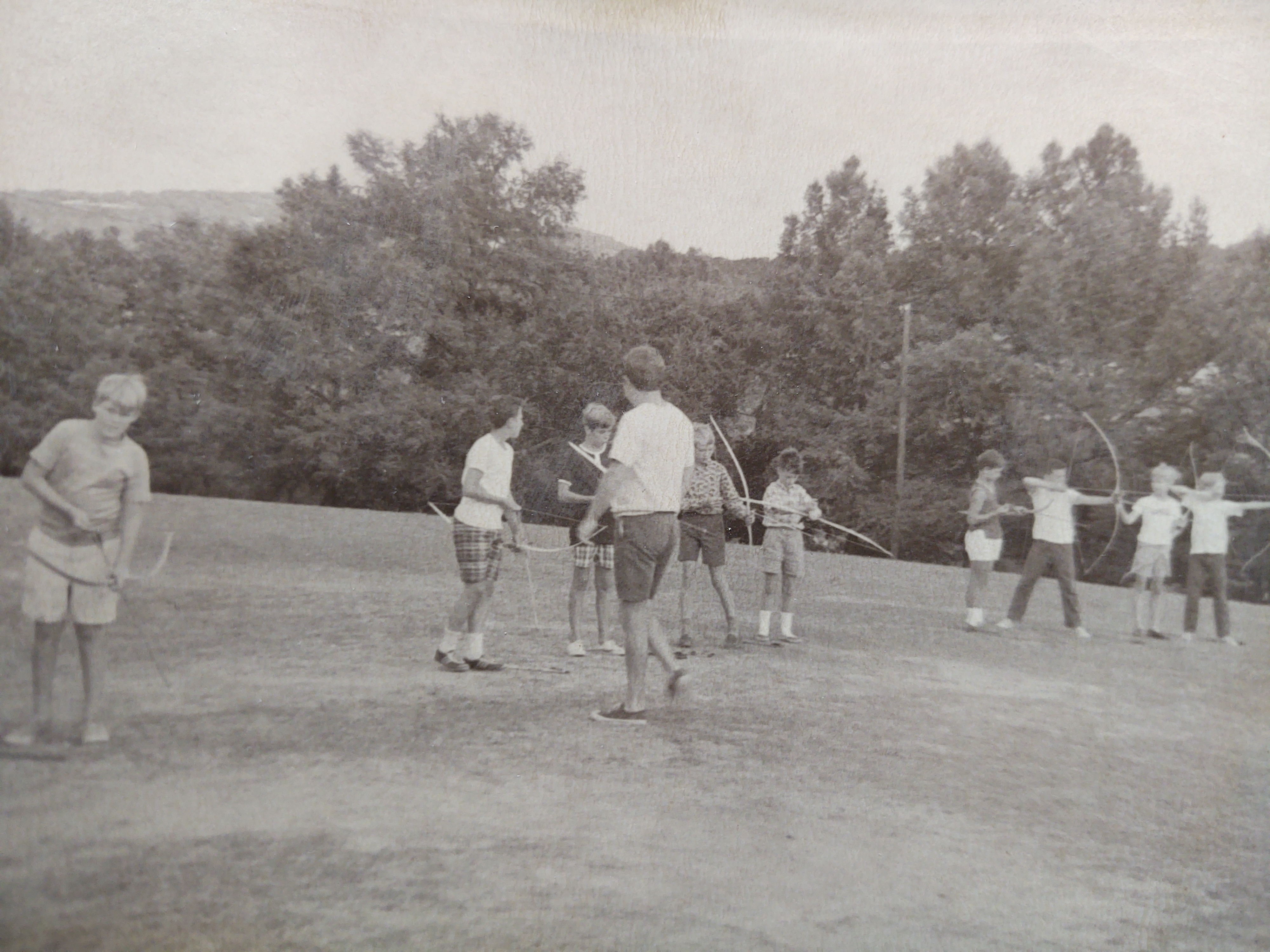 Rio Vista campers shooting arrows in Archery with the help of one of their counselors